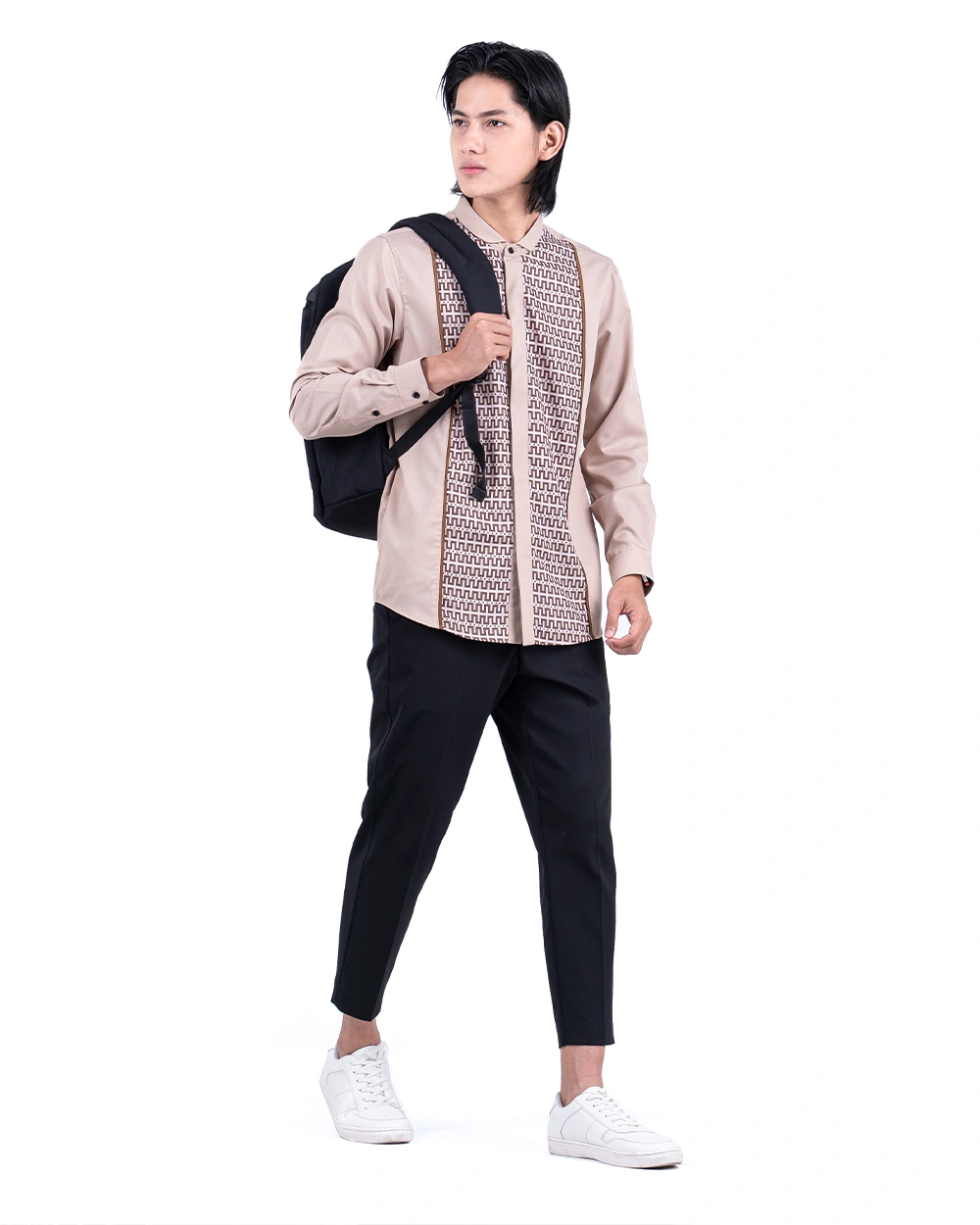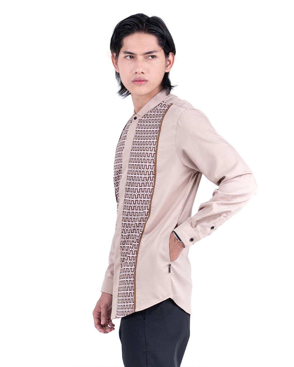Desain ini terinspirasi dari tokoh yang melangkah dengan niat, berbuat dengan makna. Tegas, rapi, namun tetap rendah hati, karena gaya terbaik adalah yang selaras dengan nilai hidup, bukan untuk bersaing dalam duniawi, tapi untuk menang dalam kebaikan yang abadi.