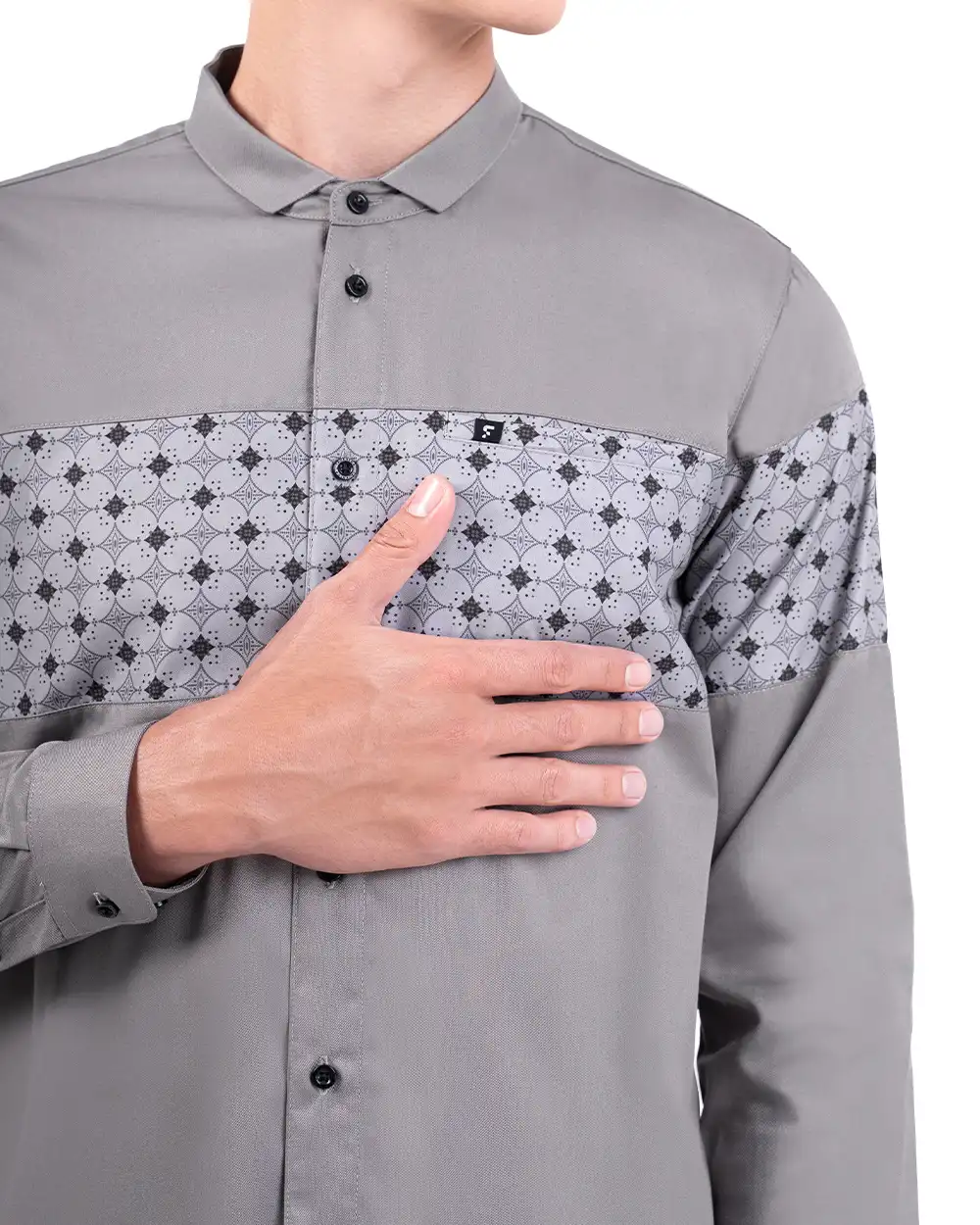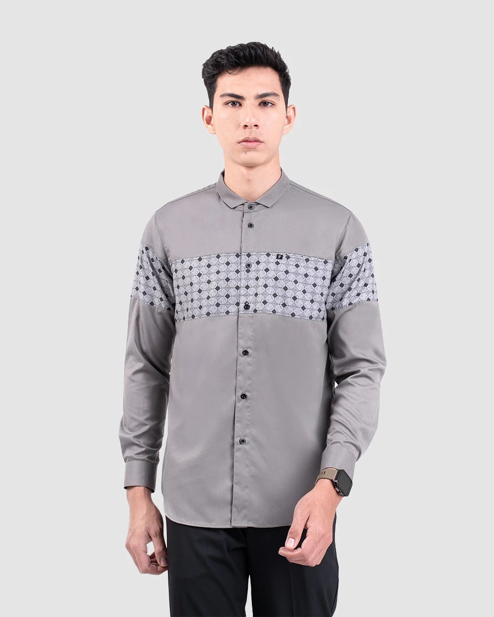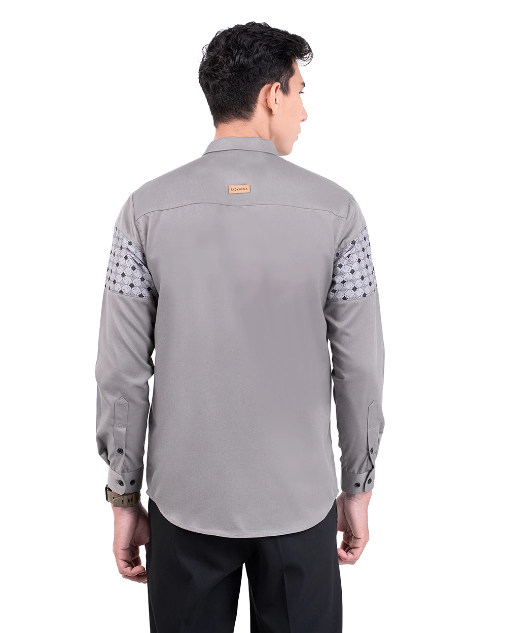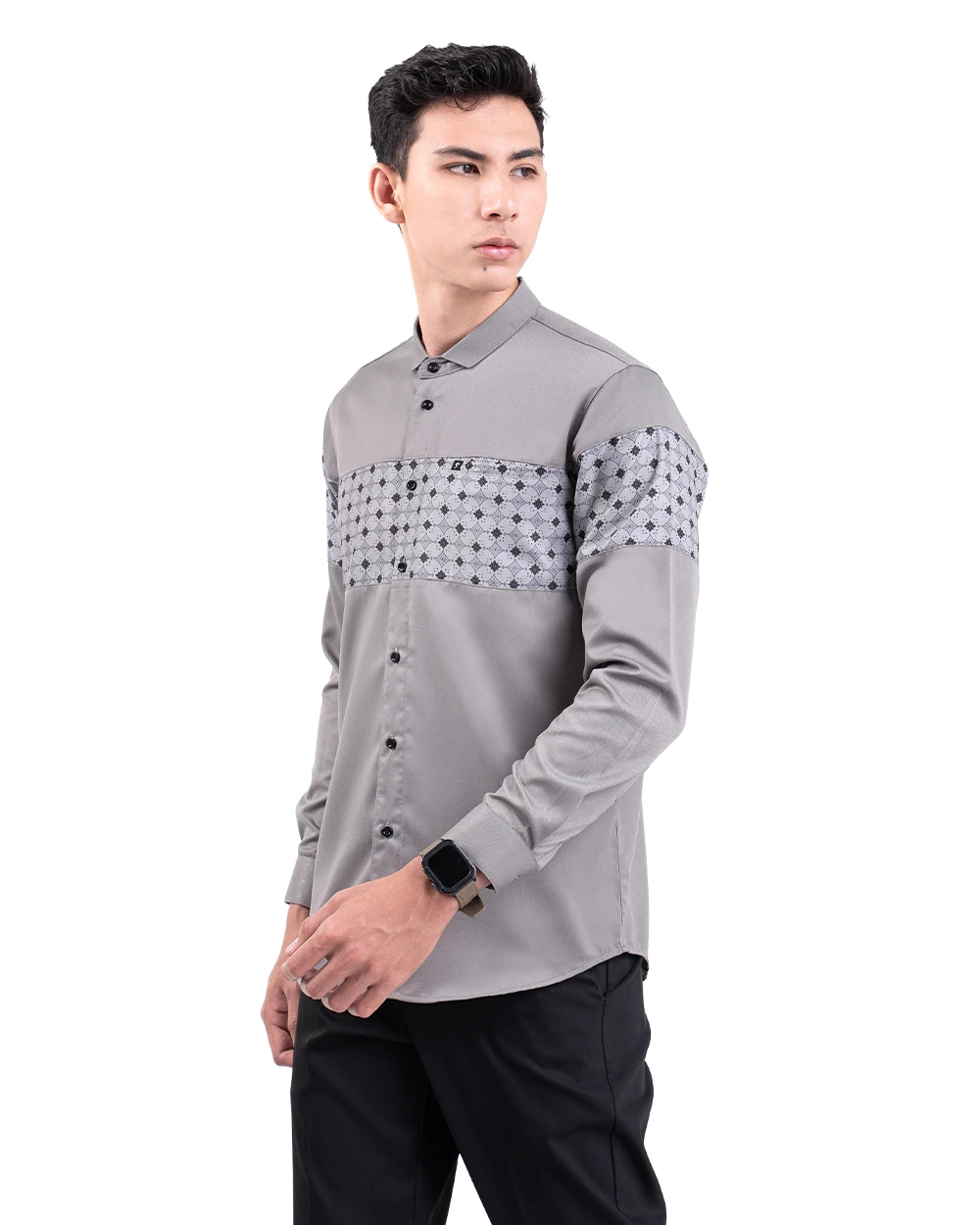 Lengkungan yang saling terhubung menyiratkan harmoni dalam hubungan sosial. Warna grey memberi kesan tenang dan kuat. Penampilan ini bikin lebih percaya diri dengan look yang tetap elegan.