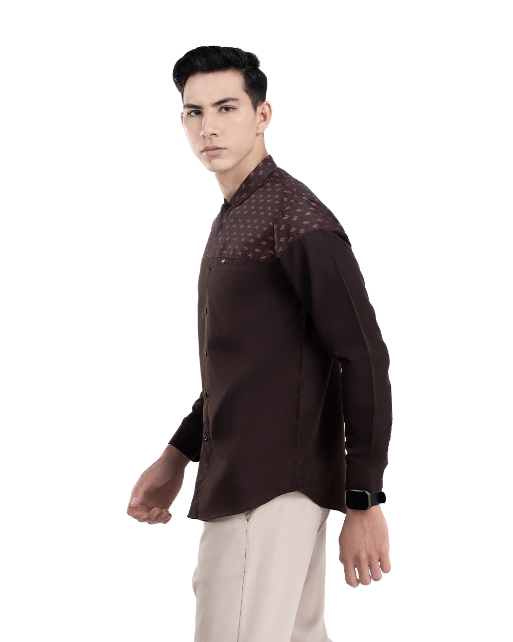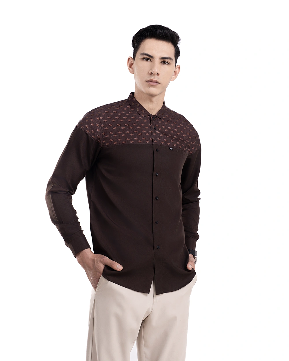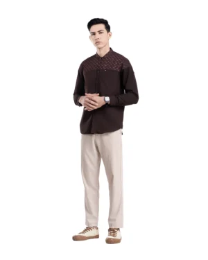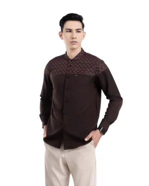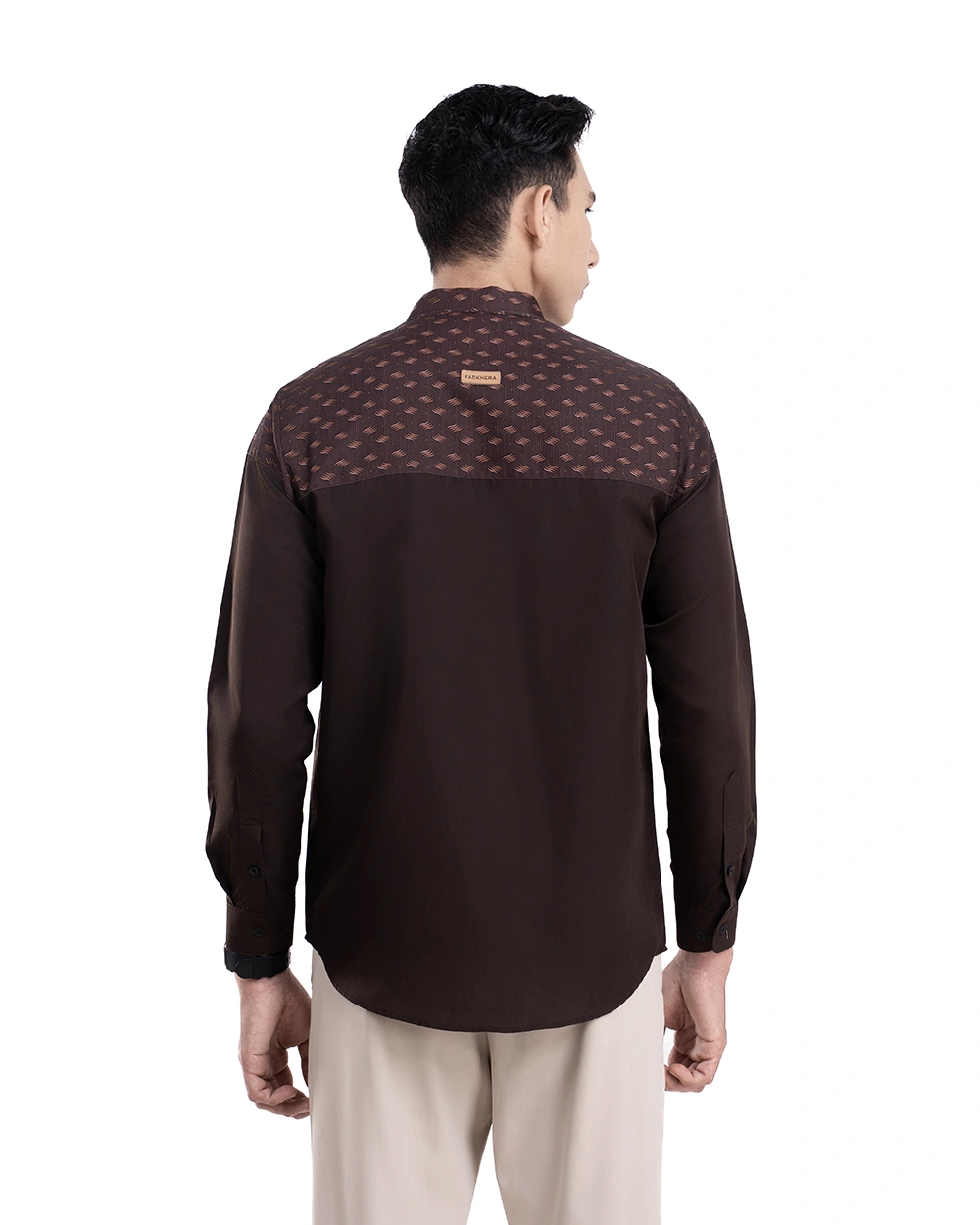 Series Koko Modern Eksklusif hasil kolaborasi Fadkhera x MPD 3 dengan motif Geometric yang menampilkan pola vertikal menyerupai jalur berulang yang bergerak naik. Susunan ini merepresentasikan arah yang jelas, semangat pertumbuhan, serta harapan untuk melangkah menuju masa depan yang lebih baik. Garis-garis paralel yang mengalir di balik motif memperkuat kesan kestabilan, fokus, dan konsistensi dalam setiap proses. Balutan warna redwood menghadirkan karakter hangat, kuat, dan penuh energi. Penampilan ini bikin lebih percaya diri dengan look elegan yang tegas dan modern.