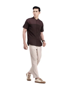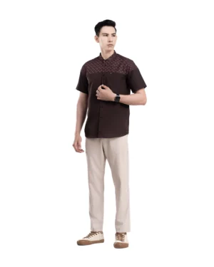 Series Koko Modern Eksklusif hasil kolaborasi Fadkhera x MPD 3 dengan motif Geometric yang menampilkan pola vertikal menyerupai jalur berulang yang bergerak naik. Susunan ini merepresentasikan arah yang jelas, semangat pertumbuhan, serta harapan untuk melangkah menuju masa depan yang lebih baik. Garis-garis paralel yang mengalir di balik motif memperkuat kesan kestabilan, fokus, dan konsistensi dalam setiap proses. Balutan warna redwood menghadirkan karakter hangat, kuat, dan penuh energi. Penampilan ini bikin lebih percaya diri dengan look elegan yang tegas dan modern.
