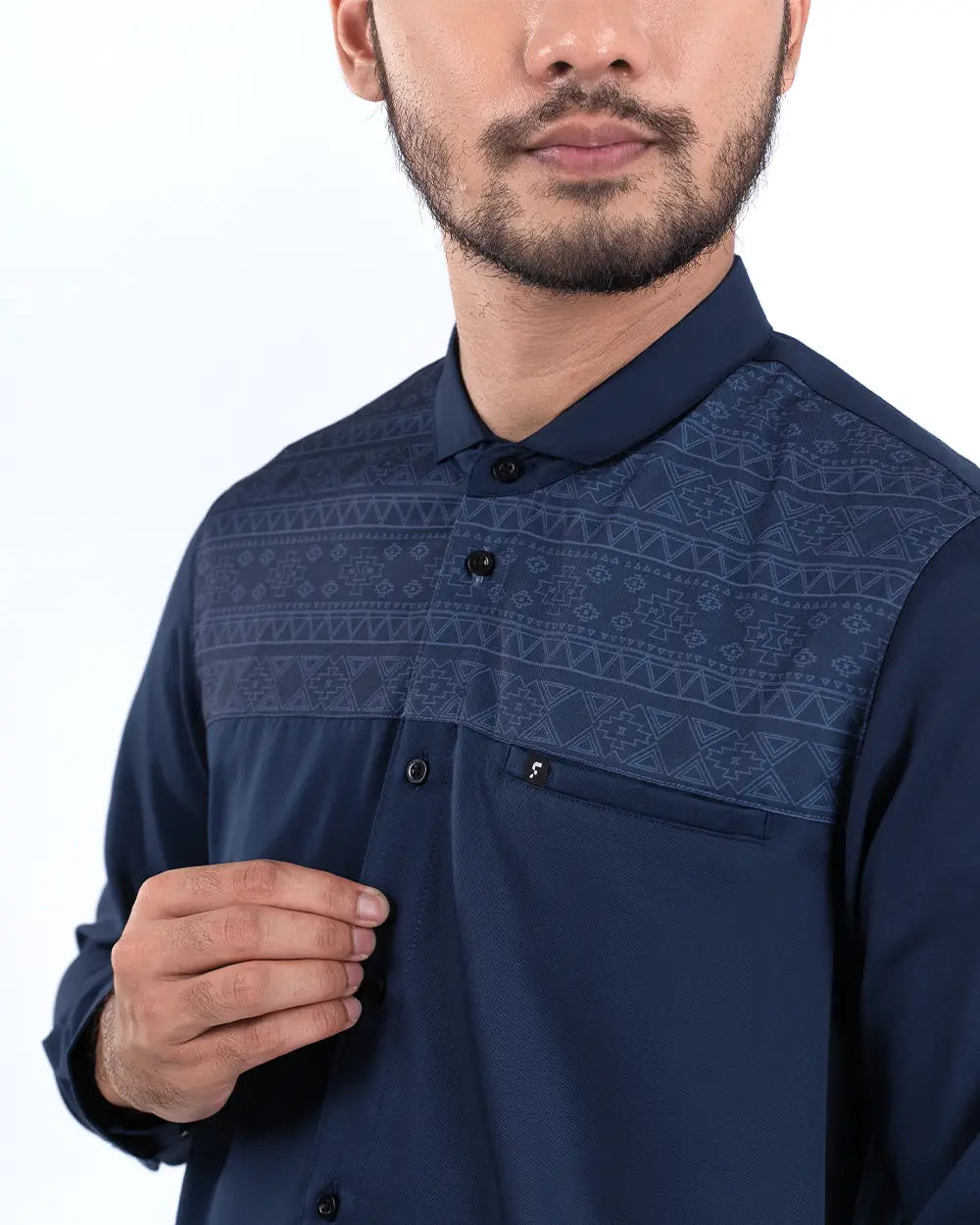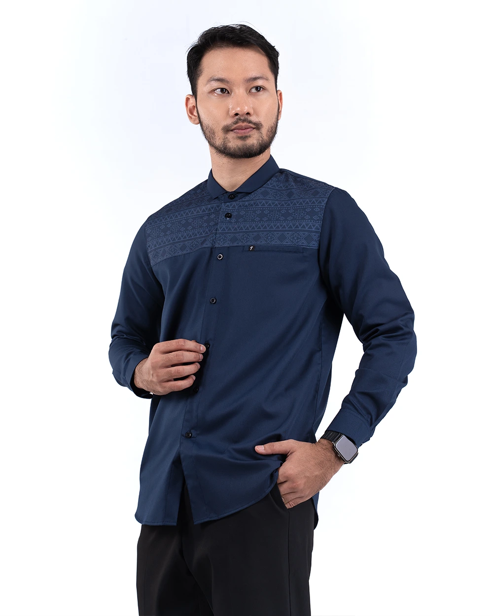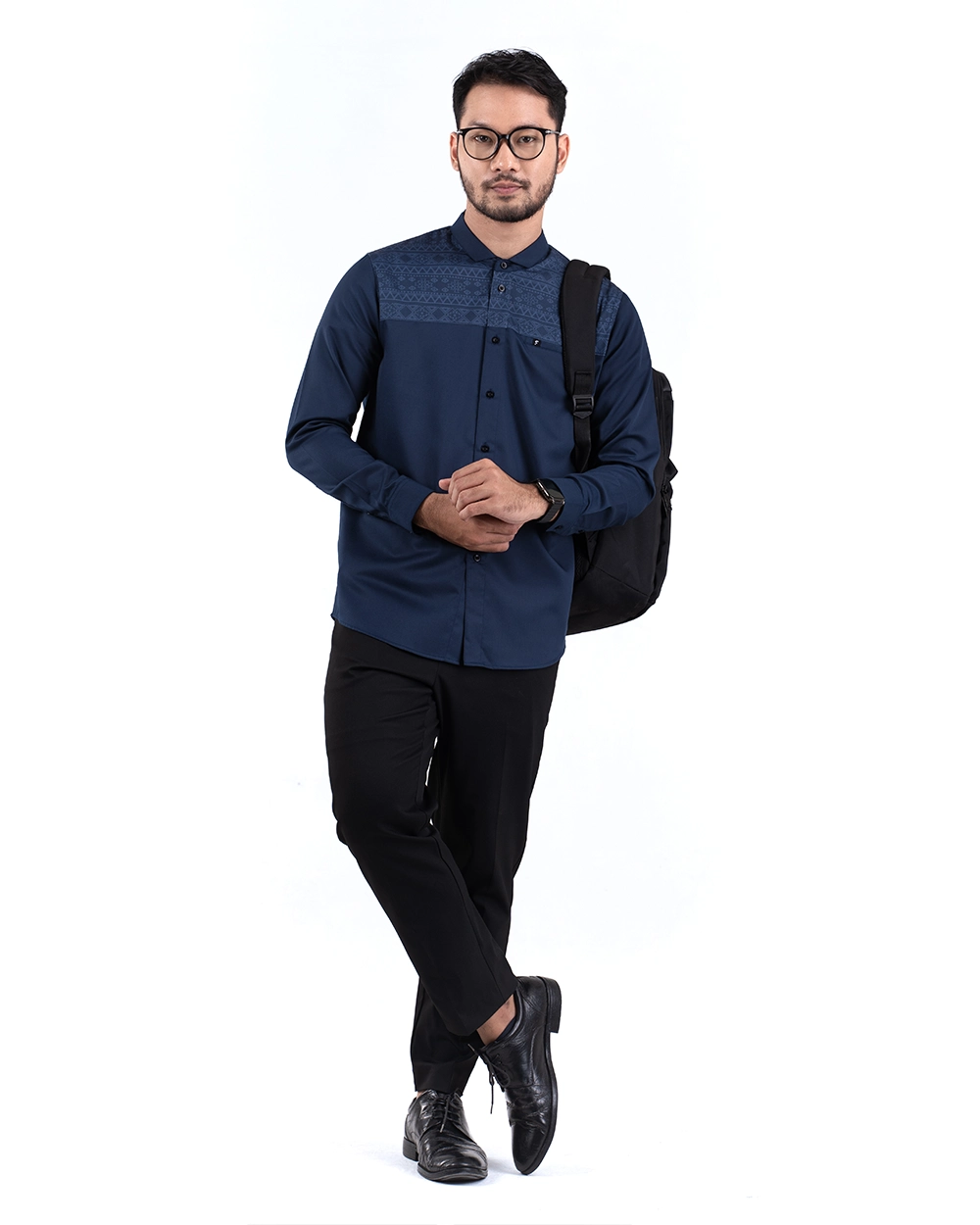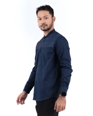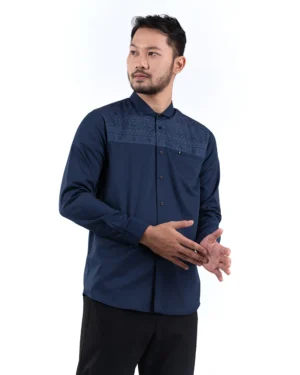 Koko Modern Eksklusif dengan perpaduan motif Modern Geometric Diamond berwarna Navy combination dibagian atas. Dipadukan dengan kombinasi warna solid navy dibagian bawah membuat penampilan fashion yang selalu tampak stylish dan cool.
