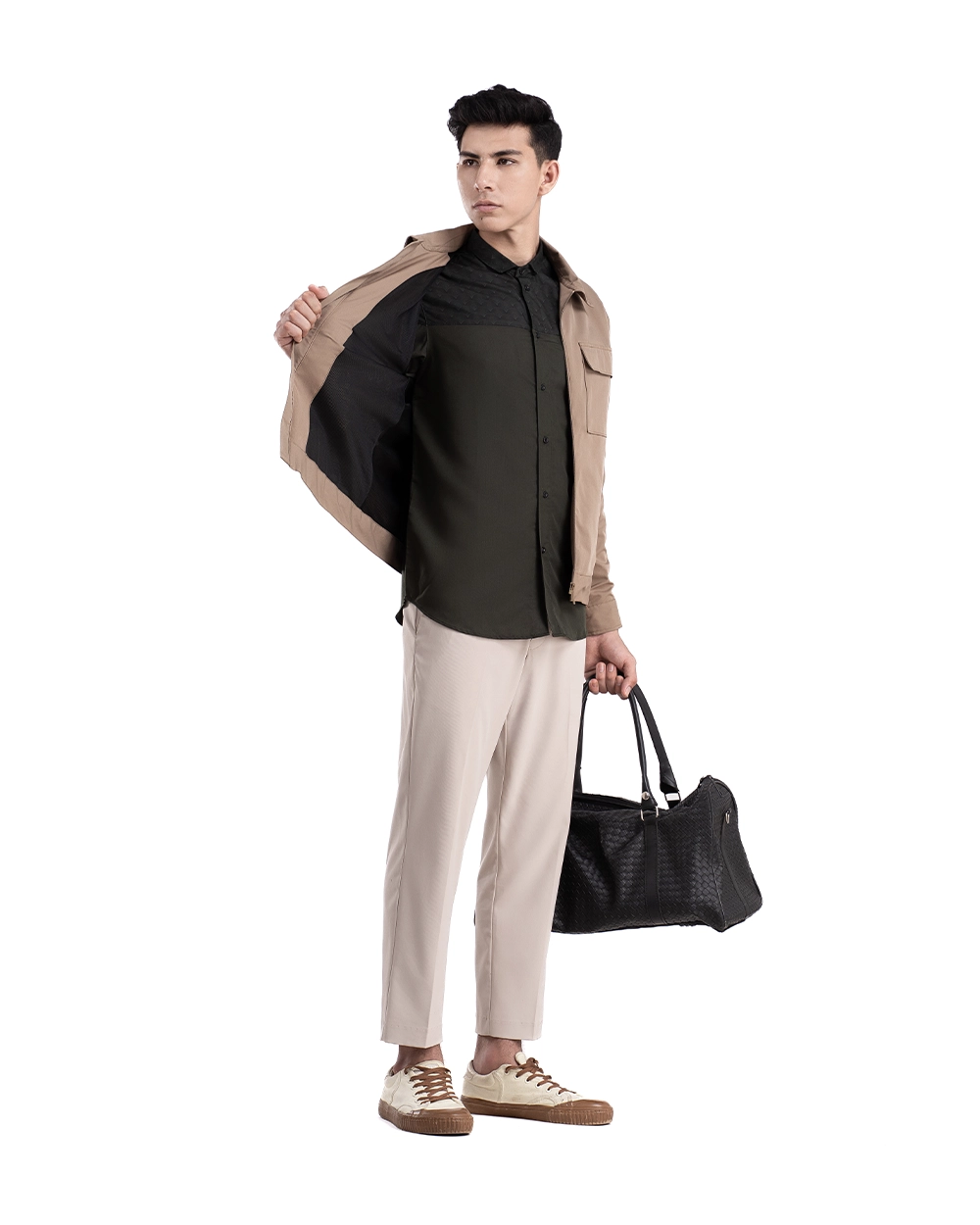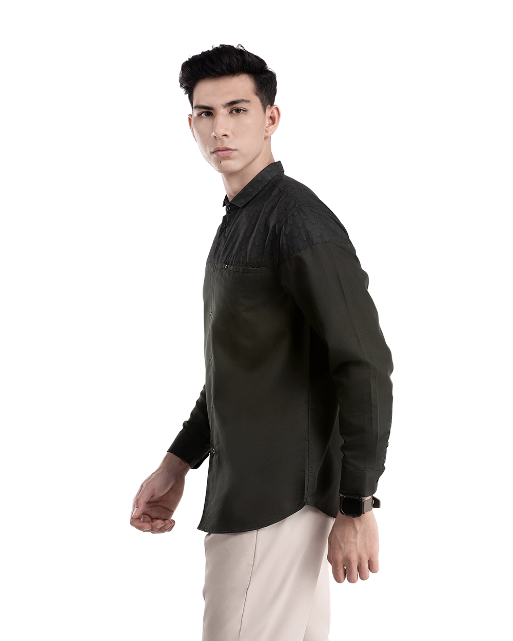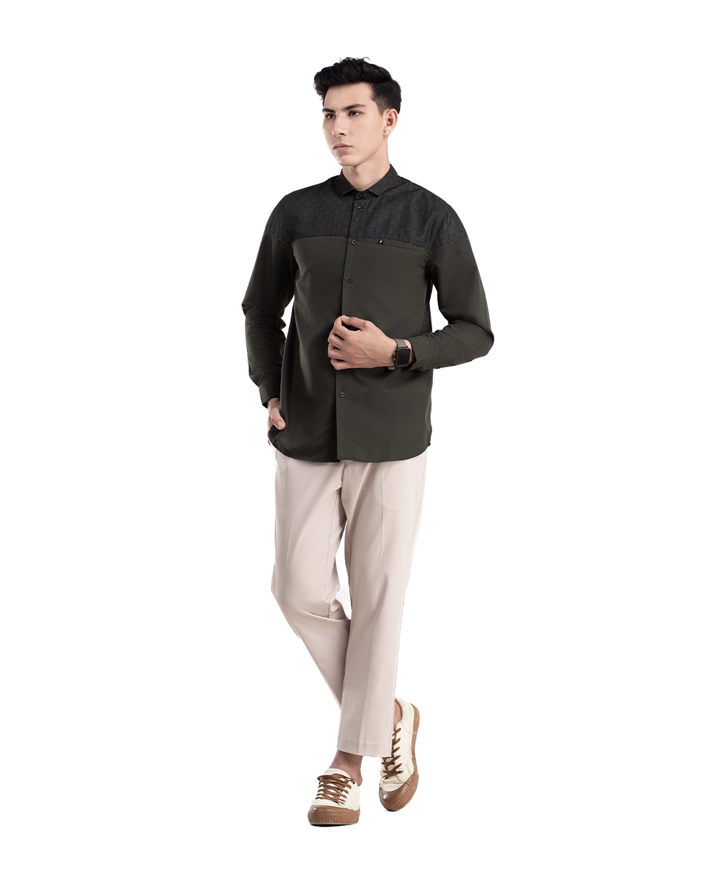 Susunan motif yang berulang mencerminkan konsistensi dalam menjaga prinsip hidup. Seperti shaf yang tersusun rapi dalam salat, setiap elemen memiliki posisi dan peran yang saling melengkapi. Tidak ada yang berdiri sendiri, semuanya terhubung dalam harmoni yang kuat. Balutan warna dark olive memperkuat kesan dewasa, stabil, dan membumi, menjadikan Raslan pilihan tepat untuk pria Muslim yang ingin tampil rapi, berkarakter, dan penuh makna.